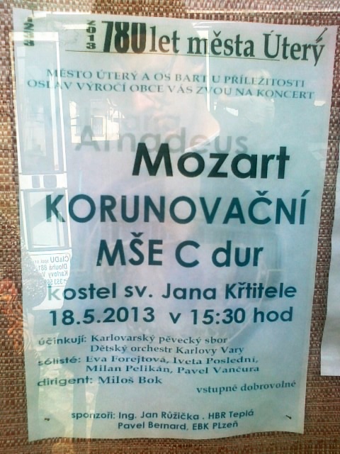 sobota 18.5.2013 - Mozart: Mše C - Korunovační (opět) 16h kostel v obci Úterý - má to tam skvělou atmosféru, dirigent Miloš Bok