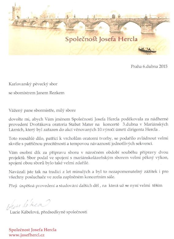 Koncert byl věnován 10. výročí úmrtí dirigenta, sbormistra a regenschoriho Josefa Hercla, který dirigoval i náš sbor.