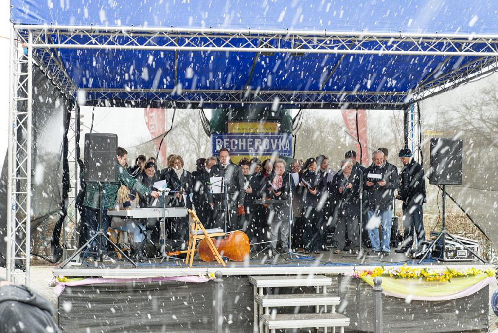 připojuji vzpomínku na naše jarní vystoupení na velikonočních trzích před Becherovkou. Ano, kosa byla v pondělí řádně nabroušená, holubům na Javoře mrzly zobáčky a nakonec odvedli Martina na bílém koni. Z obecenstva vydrželi pouze ti nejzamilovanější rodinní příslušníci, ostatní SRPŠ se rozutelko, když začlo chumelit. Náhodní kolemdoucí ani nezvolnili krok. Ano, bylo to náročné